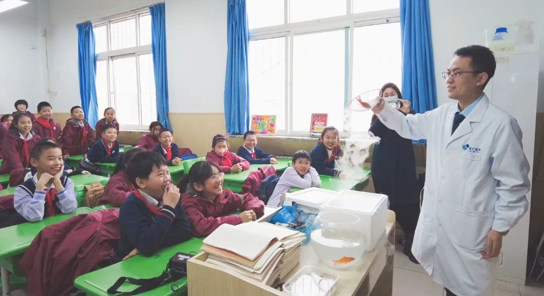 在講座之后,安排了“凍魚復(fù)蘇”實驗環(huán)節(jié),將小金魚短暫置于零下196攝氏度的液氮環(huán)境中,其瞬間變?yōu)楸癜愕谋鶅鰻顟B(tài),再放入魚缸中恢復(fù)生機,現(xiàn)場氣氛輕松活躍,穿插講解了干細胞的凍存原理,學(xué)生能夠?qū)⒗碚撝R與實踐相結(jié)合,從而更深刻地感受到生物科技的力量。