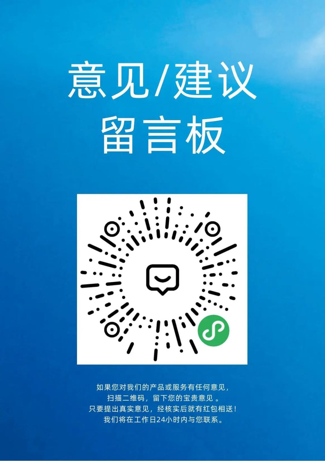 掃描上方二維碼,就能進(jìn)入意見(jiàn)反饋?lái)?yè)面。在這里,您可以毫無(wú)保留地表達(dá)您的真實(shí)感受,我們承諾,會(huì)用心傾聽(tīng)、認(rèn)真對(duì)待每一條反饋。